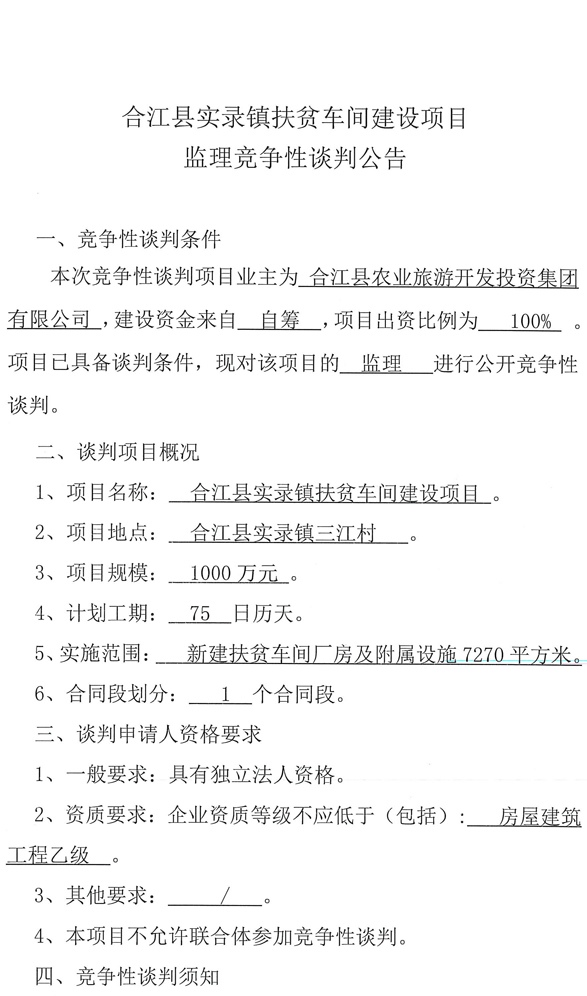 合江縣實(shí)錄鎮(zhèn)扶貧車間建設(shè)項(xiàng)目監(jiān)理競爭性談判公告.docx