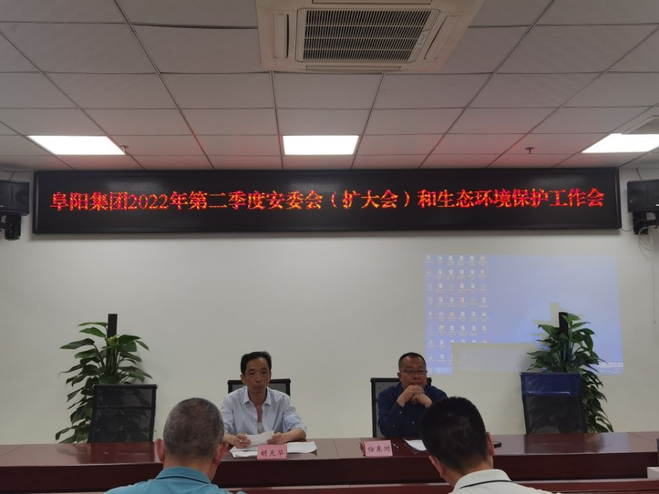 4 月 27 日, 阜 陽(yáng) 集 團(tuán) 黨 委 委 員 、 副 總 經(jīng) 理 胡 天 華 主 持 召 開(kāi) 2022 年 第 二 次 安 委 會(huì) ( 擴(kuò) 大 會(huì) ) 和 生 態(tài) 環(huán) 境 保 護(hù) 工 作 會(huì) , 阜 陽(yáng) 集 團(tuán) 黨 委 副 書(shū) 記 、 總 經(jīng) 理 任 東 財(cái) 出 席 會(huì) 議 。 會(huì) 議 傳 達(dá) 學(xué) 習(xí) 了 習(xí) 近 平 總 書(shū) 記 關(guān) 于 安 全 生 產(chǎn) 工 作 重 要 指 示 和 李 克 強(qiáng) 總 理 批 示 要 求 及 近 期 省 、 市、 縣 相 關(guān) 安 全 環(huán) 保 文 件 、 會(huì) 議 精 神 。