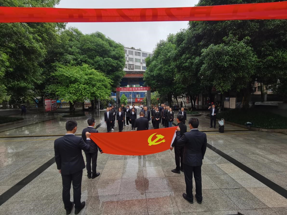 全體黨員干部面向黨旗,舉起右拳,重溫入黨誓詞。