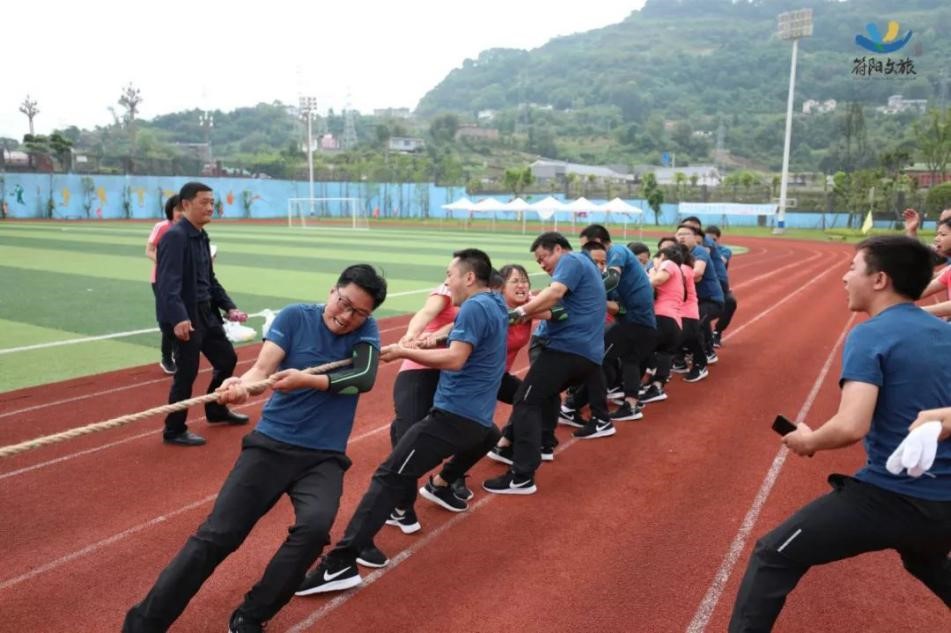隨著哨聲一響,我們雙手握緊長繩,咬緊牙關(guān)向后拉,為了把握節(jié)奏形成合力,心里默念著“一二、一二”,場上一時(shí)僵持難下,但難敵強(qiáng)悍對(duì)手,第一局廣源達(dá)勝。這仿佛符合多數(shù)人的預(yù)期,但我們?cè)鯐?huì)被拘于這固定印象,越戰(zhàn)越勇才是符陽文旅人的風(fēng)姿。第二場對(duì)決比第一場更加艱難,一開場廣源達(dá)占據(jù)絕對(duì)優(yōu)勢(shì),我們險(xiǎn)被拉到了終線,全憑一口氣死撐,牙關(guān)咬緊,身體后傾,不斷降低重心,腳步穩(wěn)扎,做著別人眼里無畏的掙扎。一定不能越線!在超高壓下堅(jiān)持了十余秒,那一刻拼的就是韌勁!一群瘦弱的文旅人憑著一股拼勁慢慢把賽場主動(dòng)權(quán)掌握在了自己手中,每向后移動(dòng)一步,心里的勁更足了,如荒漠迷路的旅者遇見了綠洲,我們也尋得了力量之源。當(dāng)現(xiàn)場歡呼聲響起時(shí),我們已癱坐一片,不敢置信,我們贏啦!