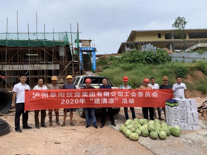 近日,合江持續(xù)高溫,為保障一線人員的身體健康,確保各項(xiàng)生產(chǎn)工作安全有序開展,8月11日,集團(tuán)公司黨委委員、工會主席袁健,帶領(lǐng)集團(tuán)黨群紀(jì)檢工作部、綜合部先后深入鑫晟學(xué)府、殯儀中心、龍掛山景區(qū)等十多個(gè)項(xiàng)目建設(shè)現(xiàn)場,看望慰問奮戰(zhàn)在一線的工作者,為他們送去清涼物資和關(guān)心關(guān)愛。